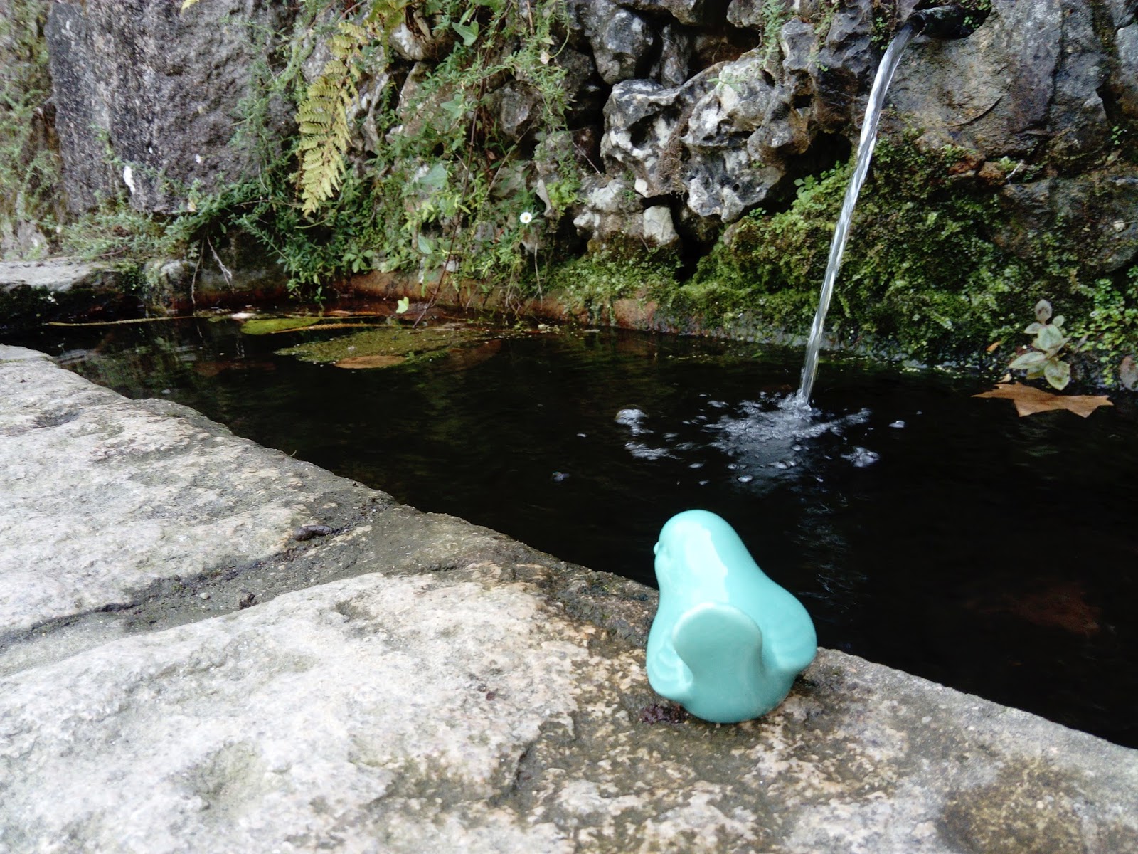 Depois de tanto voar resolveu refrescar-se com a água da fonte.